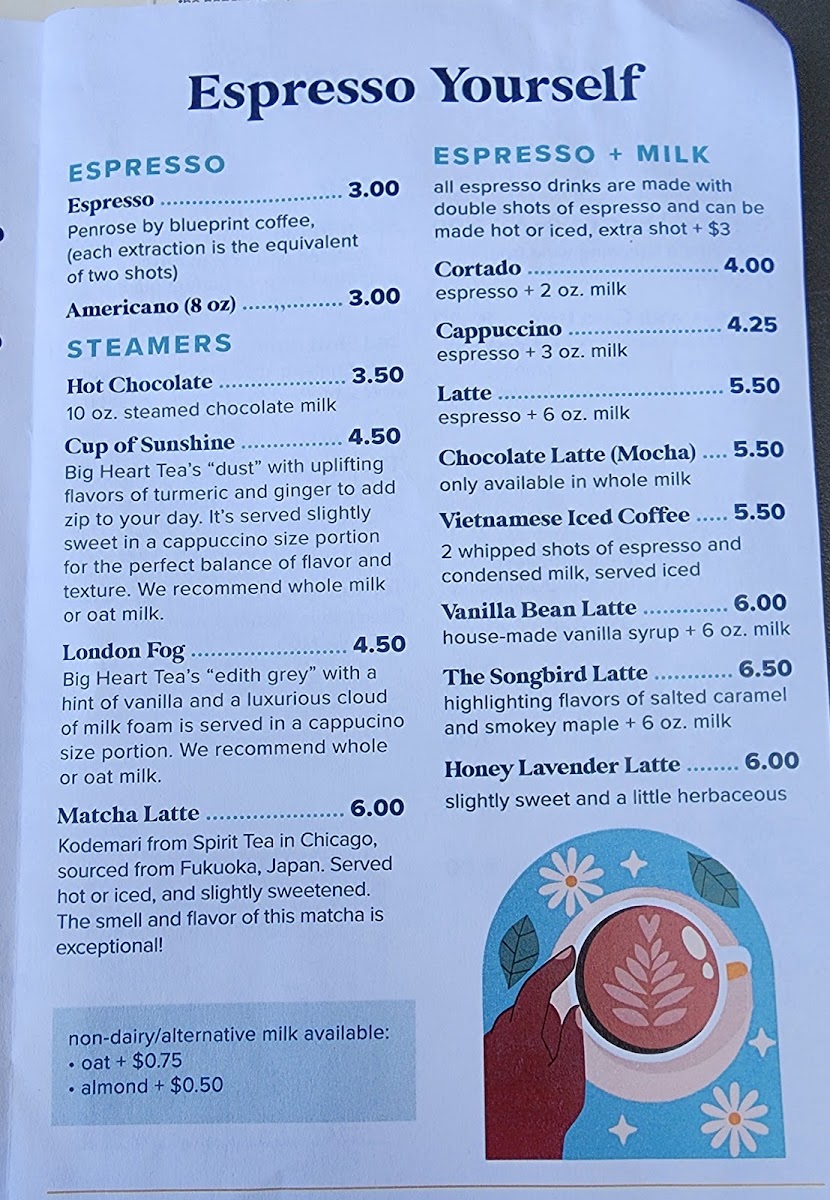 With patrons raving about the vibrant atmosphere, attentive staff, and exceptional food—combined with signature drinks like the creamy Songbird Latte—it’s no wonder guests leave with dreams of returning. Be sure to arrive early or make a reservation to experience all that Songbird has to offer!